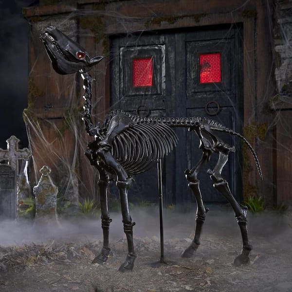 El poni esqueleto LED de Home Accents Holiday de 1,6 m de Grave & Bones tiene ojos rojos iluminados por LED y produce un auténtico y escalofriante efecto de relincho de caballo. Se activa con un sensor de sonido y es la decoración perfecta de Halloween tanto para interiores como para exteriores. El poni esqueleto funciona con 3 pilas AA (incluidas). No olvides añadir el poni esqueleto a tu colección de Halloween de Grave & Bones. Combina a la perfección con el coche fúnebre LED animado de Grave & Bones de 1,5 m.