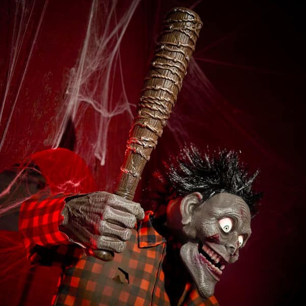 Personaliza tu exhibición de Halloween. Apílalos verticalmente o desapílalos para colocarlos uno al lado del otro o esparcidos por tu casa o espacio exterior cubierto. Activados por sensor de movimiento, estos zombis tienen mucho que decir con su diálogo interactivo que captará la atención de cualquier transeúnte. Los tres zombis mueven la boca y el que está vestido a cuadros mueve el brazo mientras blande su bate. Luces LED iluminan sus grandes ojos saltones mientras observan a los niños que piden dulces ir y venir. No te pierdas este amenazante trío esta temporada de Halloween.