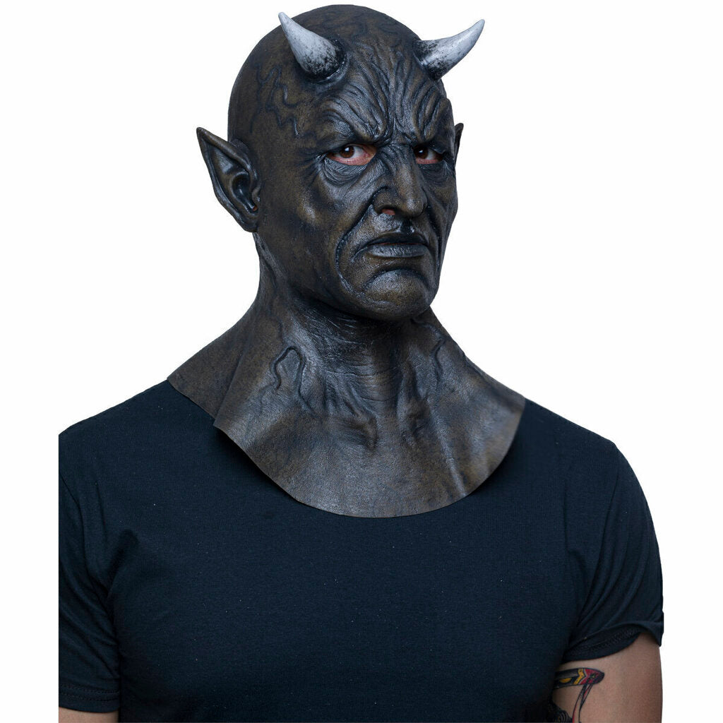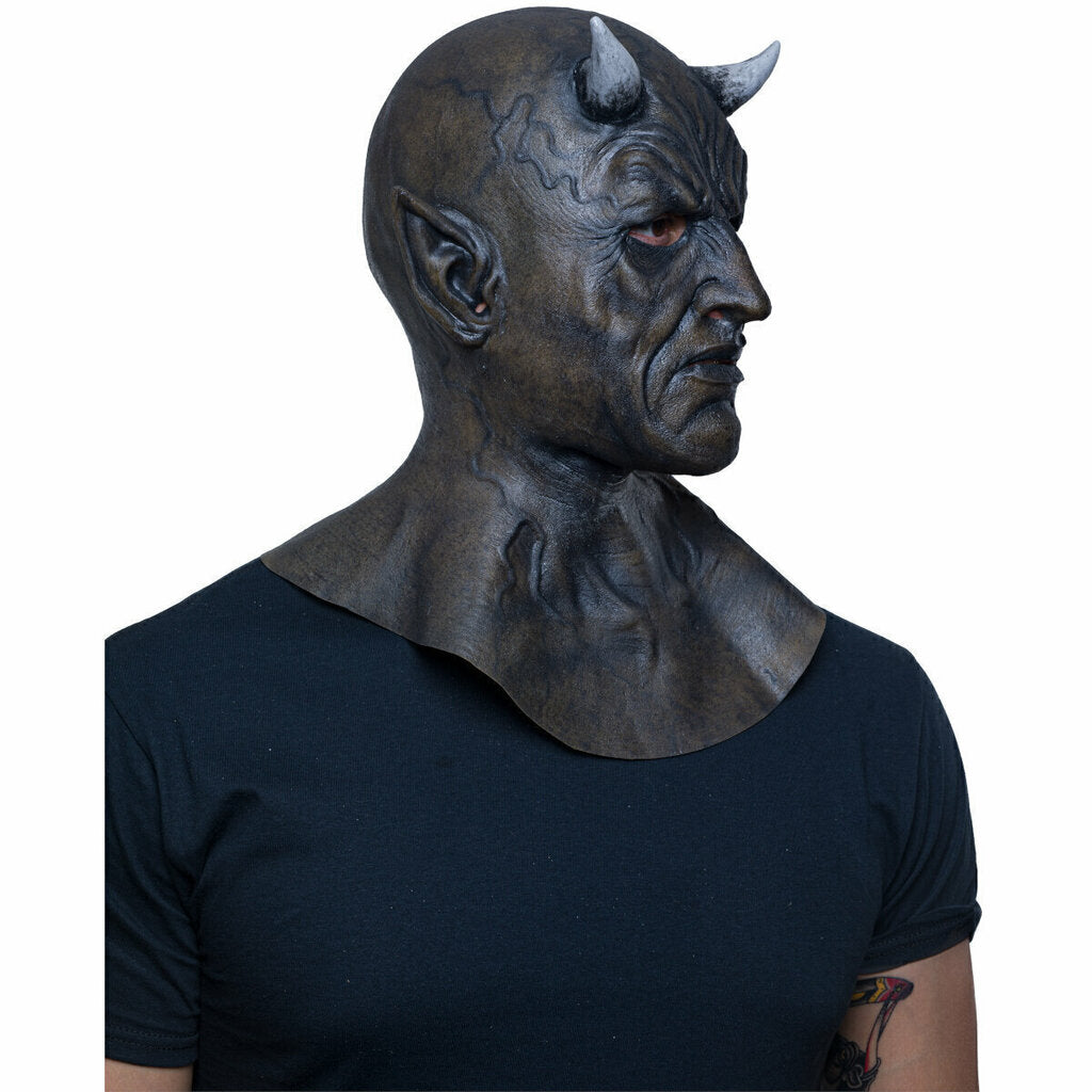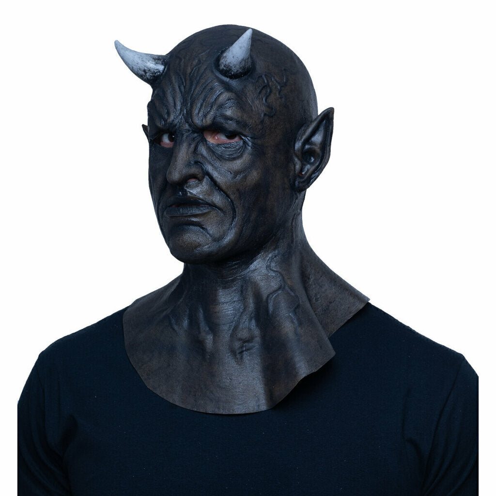 Máscara de látex Mephistopheles de Hyper Masks. Mephistopheles es una máscara de diablo negro, gracias a su perfecto diseño tan realista al usarla vivirás en el infierno. Hecha y pintada a mano en México con proceso completamente artesanal. De alta Calidad, Durabilidad y Diseño Original by Ghoulish Productions.