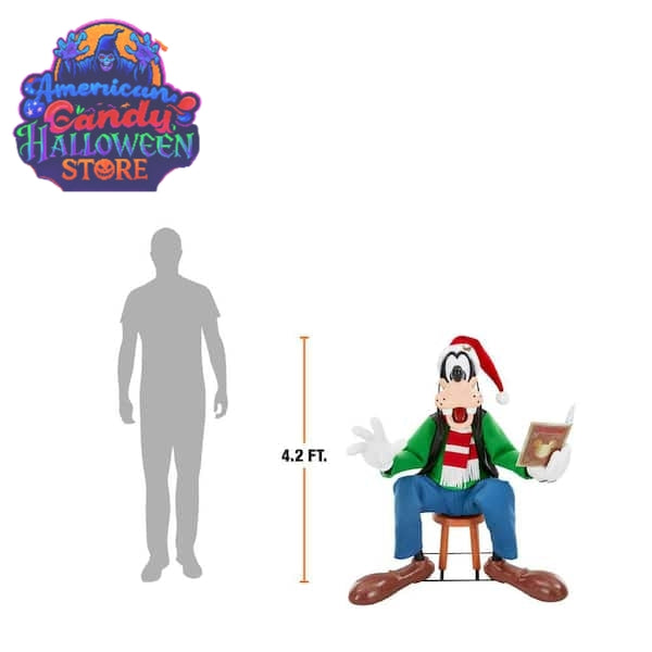 ¡Caramba! La novedad de este año en la colección navideña es el Goofy Navideño Animado de 1,22 m. Acércate y acércate mientras Goofy recita un poema de su libro y canta dos canciones navideñas diferentes. Activa su sensor de movimiento y su cabeza comenzará a moverse mientras su brazo derecho se mueve al ritmo de su alegre poema y canciones navideñas. Ataviado con ropa navideña, Goofy lleva un gorro y una bufanda navideños, además de su estilo tradicional de Goofy, perfectos para la temporada. ¡Añade un toque de magia Disney a tu hogar esta Navidad con este clásico personaje apto para interiores! ¡Combina a la perfección con sus otros amigos Disney Navideños, A-Hyuck! Solo para uso en interiores Sensor de movimiento activado Servomotores en la cabeza para un movimiento realista 2 movimientos: movimiento de cabeza y movimiento de mano derecha Habla, recita un poema y canta dos canciones diferentes Se ensambla por una sola persona en 30 minutos Incluye adaptador de corriente Temporizador: 6 horas encendido / 18 horas apagado Artículo con licencia de Disney Combina a la perfección con el Mickey Mouse navideño animado de 1,2 m y la Minnie Mouse navideña animada de 1,2 m Fácil de encontrar, tamaño A4 animado Haz clic aquí para obtener más información sobre