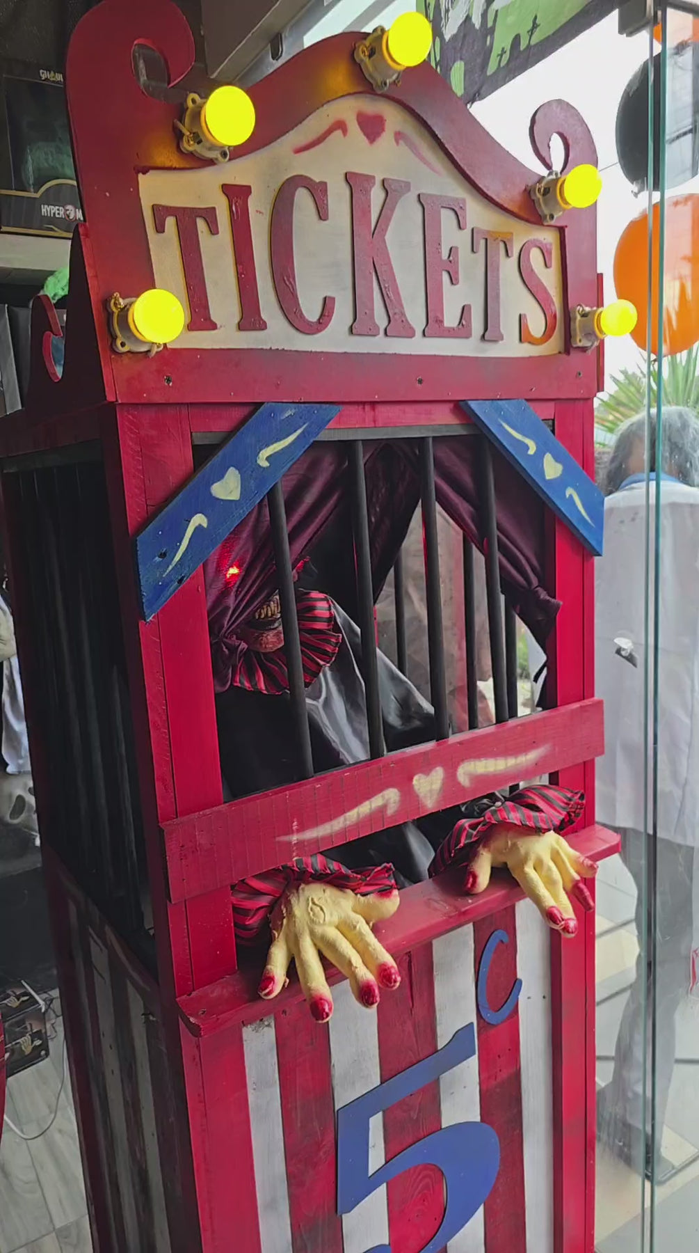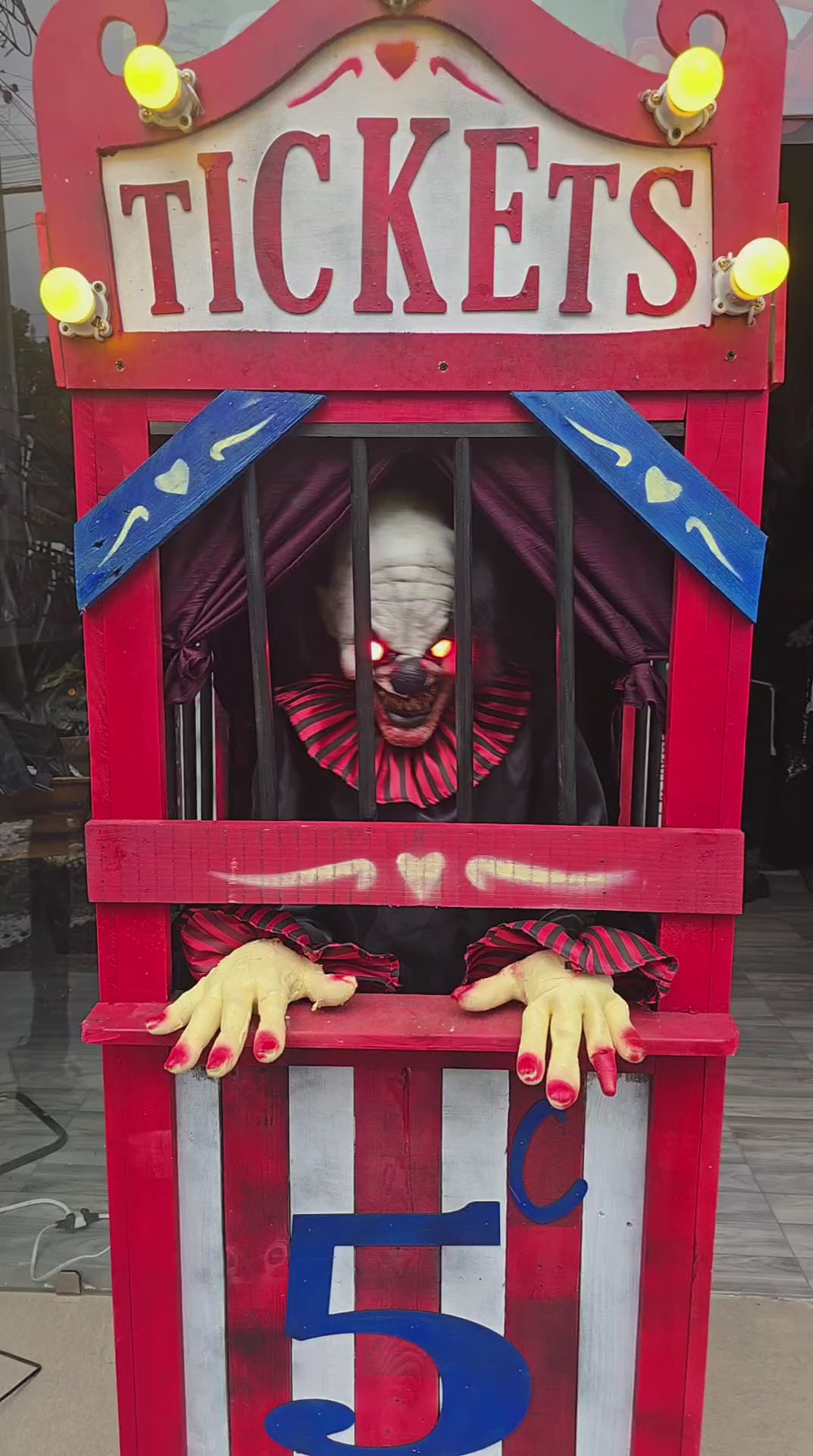 Cabina de tikets de entrada, payaso, sensor de movimiento,  sonido y movimiento